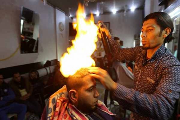 Frizer iz Rafaha u svom frizerskom salonu “New Look” u pojasu Gaze svoje mušterije šiša na jedan zaista neobičan način velikim plamenom…