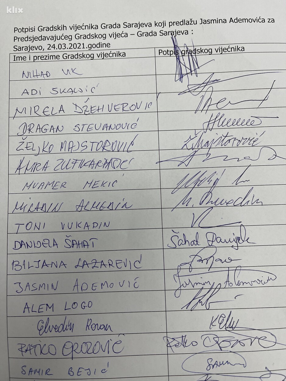 Potpisi za Ademovića dolaze u vrijeme povlačenja iz utrke za gradonačelnika Bogića Bogićevića, što uvelike mjenja kadrovsku križaljku političkih stranaka u Gradskom vijeću Grada Sarajeva.