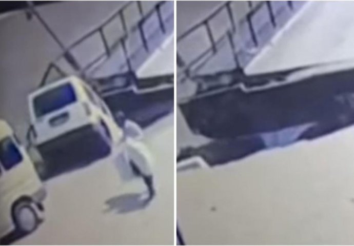 Minibus, koji je bio parkiran na mostu, takođe se survao u rijeku.