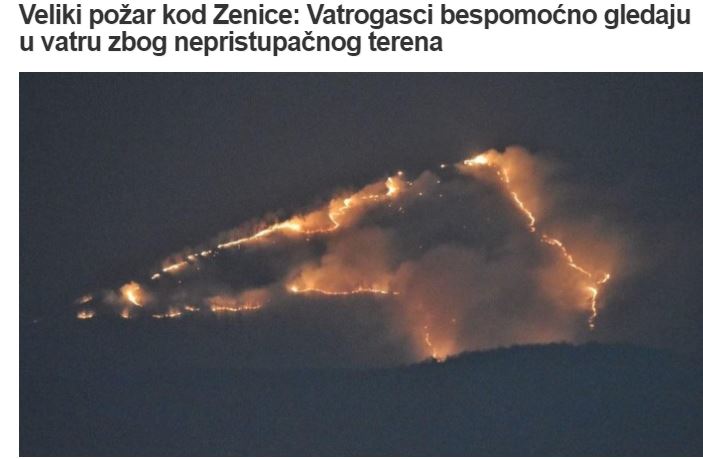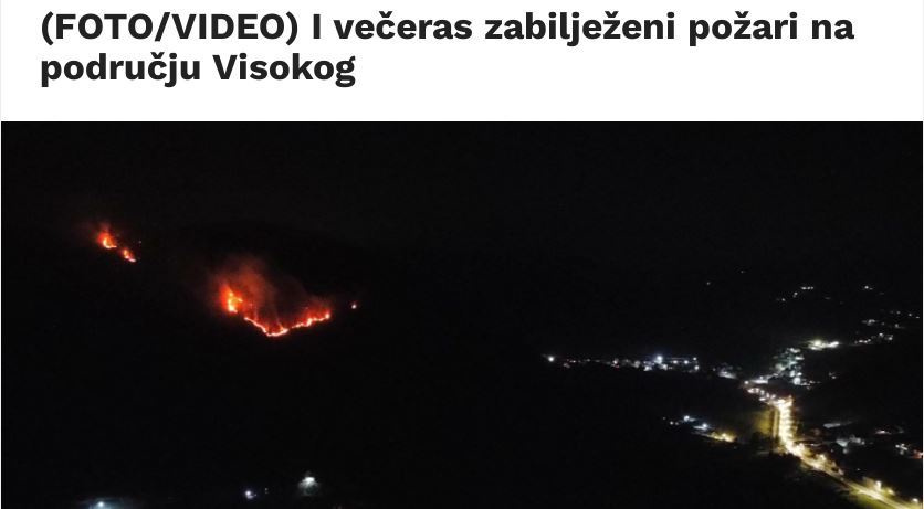 Jučer je, također, na području Zenice izbio požar u mjestu Borovi iznad Zmajevca zbog nepažnje i roštilja u prirodi. Bila je zahvaćena velika površina, ali nije bilo povrijeđenih niti štete na objektima građana.