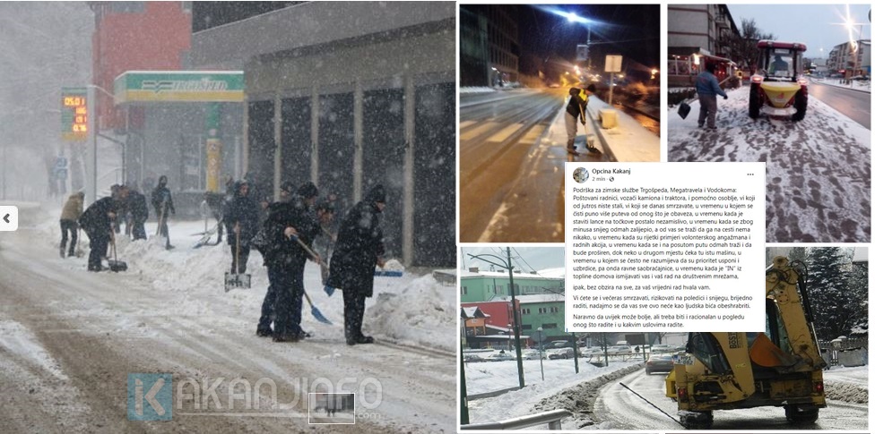 Vi ćete se i večeras smrzavati, rizikovati na poledici i snijegu, vrijedno raditi, nadajmo se da vas sve ovo neće kao ljudska bića obeshrabriti. Naravno da uvijek može bolje, ali treba biti i racionalan u pogledu onog što radite i u kakvim uslovima radite”, navodi se na stranici općine Kakanj.